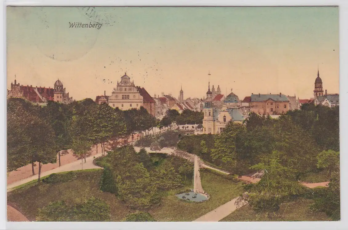 77713 Ak Wittenberg - Straßenansicht mit Parkpartie 1908
