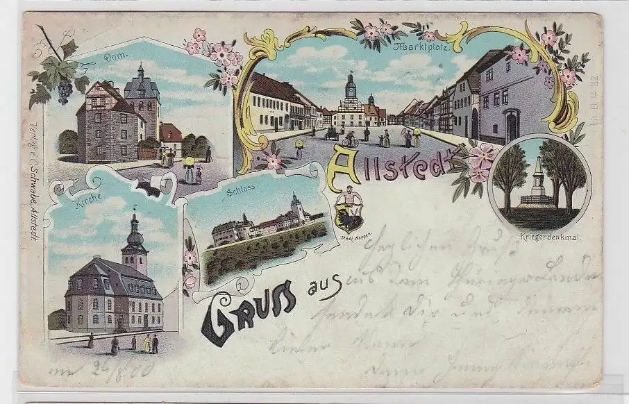 78017 Ak Lithographie Gruß aus Allstedt Dom, Kirche, Kriegerdenkmal usw. 1900