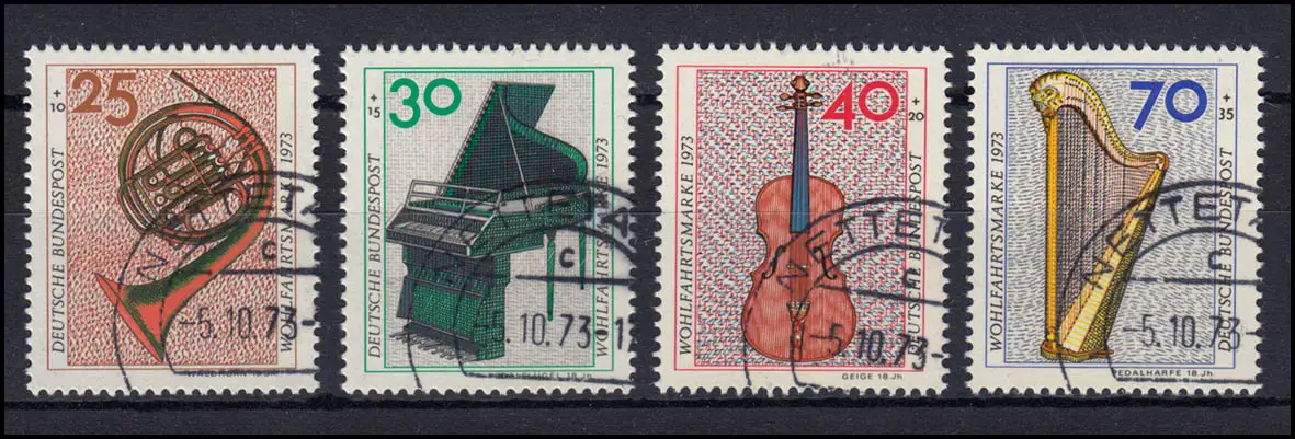 782-785 Wofa Musikinstrumente 1973: Satz Rundstempel ET-O NETTETAL 5.10.73