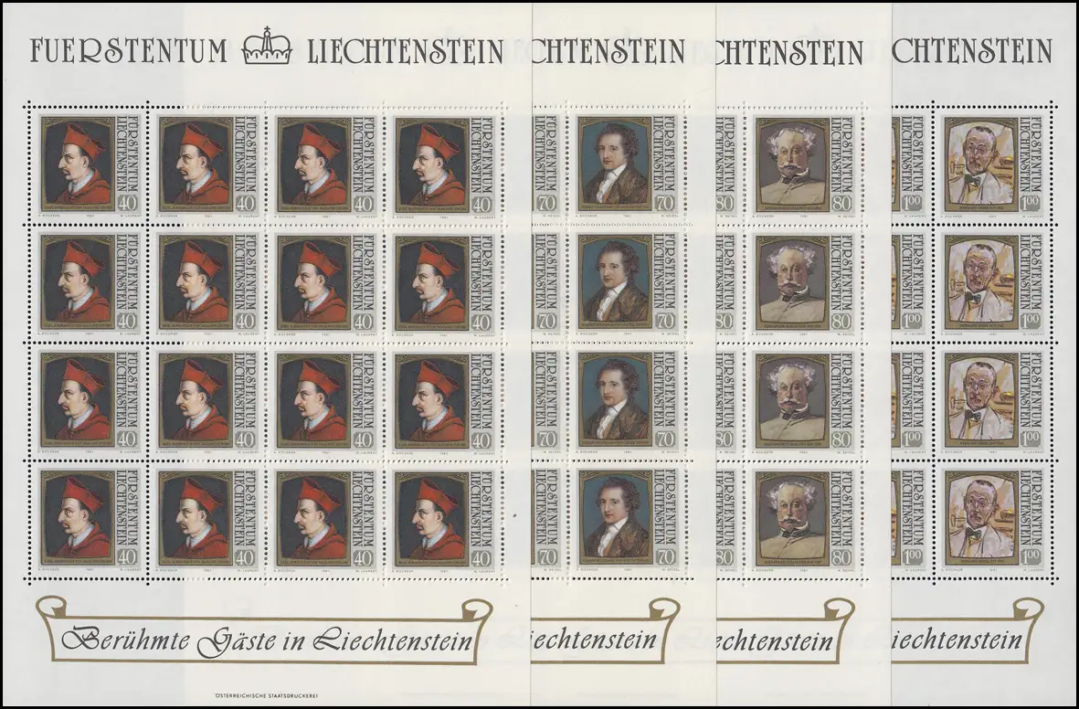 784-787 Gemälde berühmter Gäste in Liechtenstein 1981, Kleinbogen-Satz **