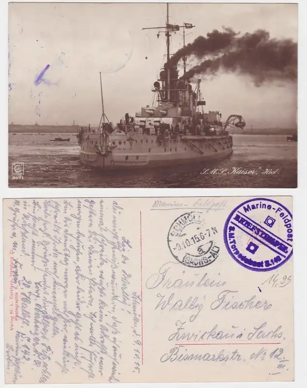78581 Feldpost Ak Kriegsschiff S.M.S. 'Kaiser' Heck 1915