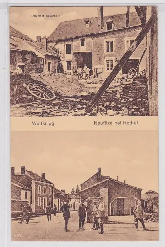 78587 Feldpost Ak Neuflize bei Rethel zerstörter Bauernhof 1916