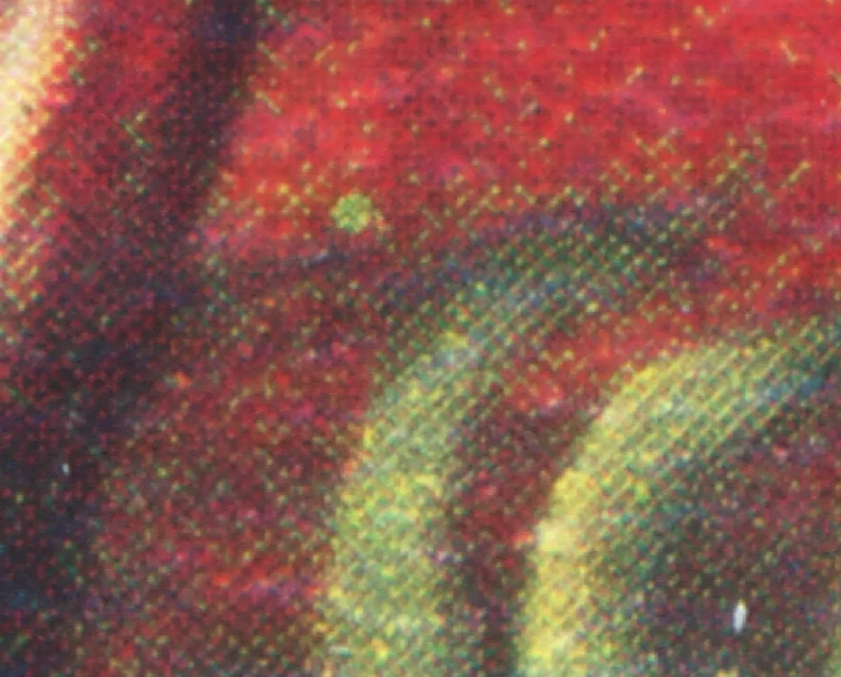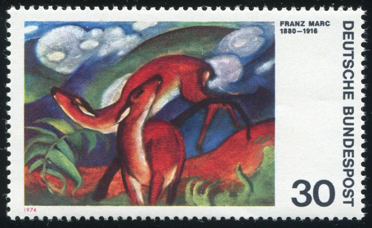 MICHEL-Plattenfehler I: grüner Fleck zwischen dem vorderen Reh und dem Grasbüschel