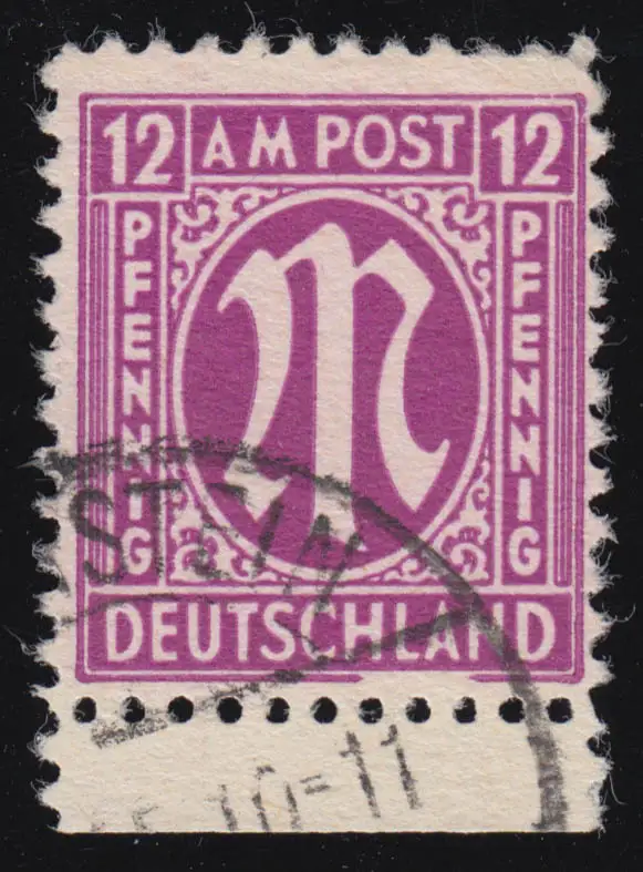 7I AM-Post 12 Pf. O mit PLF Linienbruch unter HLA, Feld 96, schönes Bedarfsstück