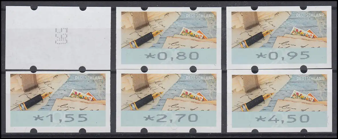Satz mit 6 Direktwahlwertstufen zu 0,60 / 0,80 / 0,95 / 1,55 / 2,70 / 4,50 Euro - alle mit rückseitiger Zählnummer