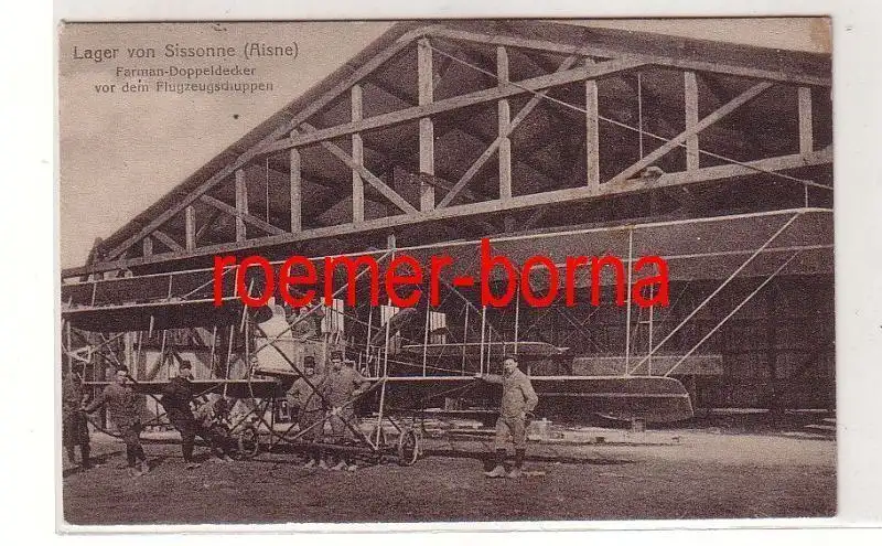 81217 Feldpost Ak Lager von Sissonne (Aisne) Farman Doppeldecker 1915