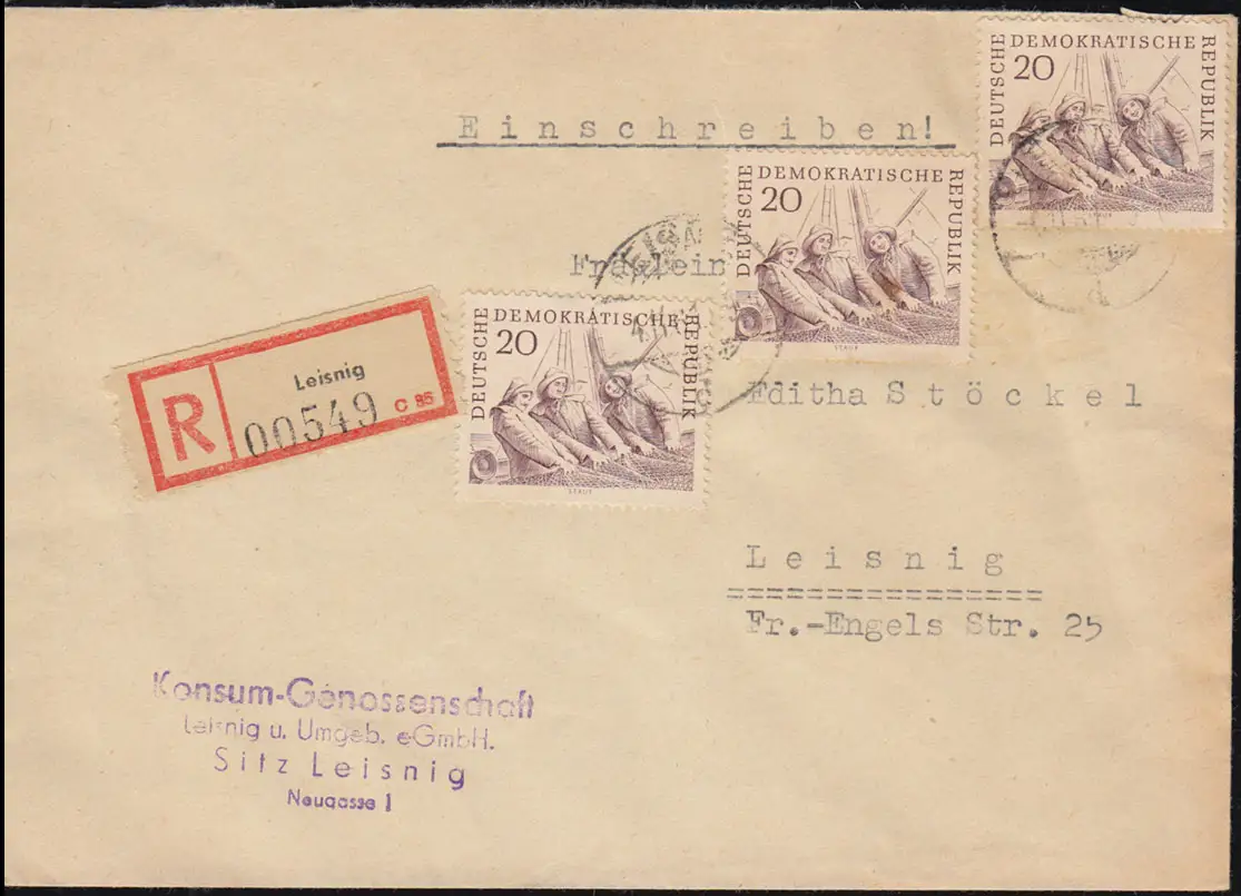 818 Hochseefischerei Fischer beim Netzeinholen MeF R-Ortsbrief LEISNIG 4.11.1961