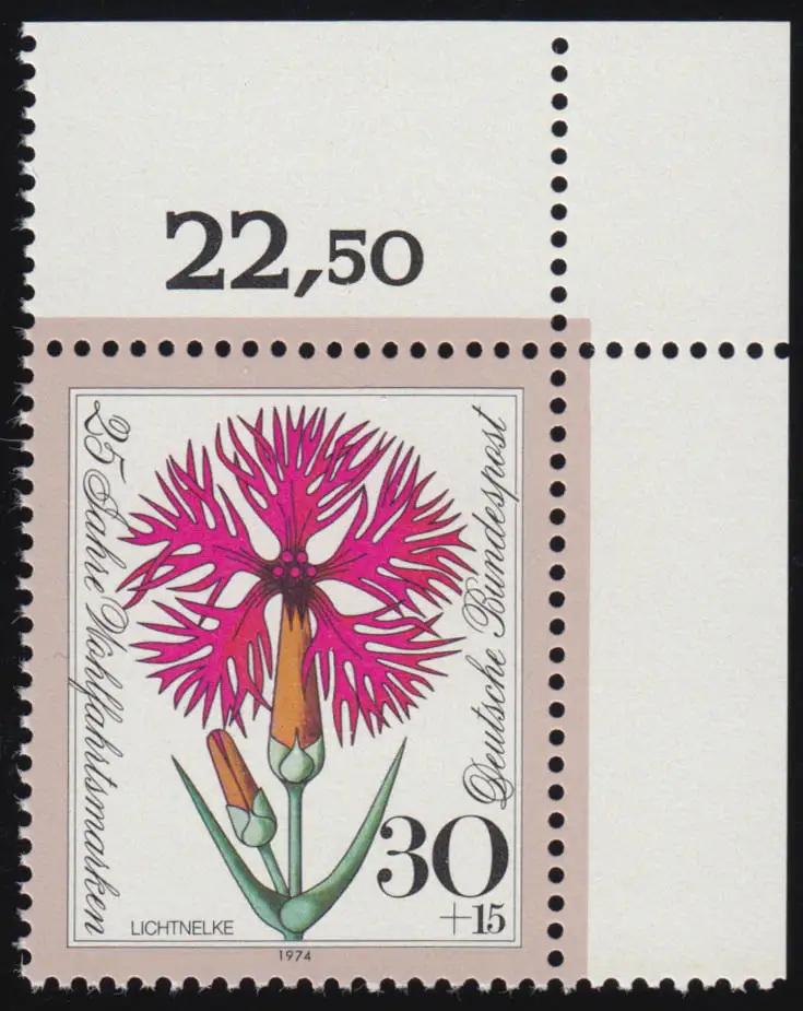 818 Wohlfahrt Blumen 30+15 Pf Prachtnelke ** Ecke o.r.