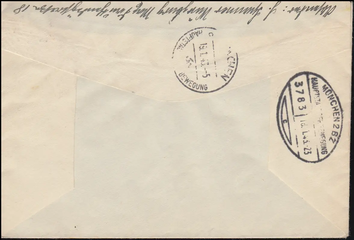 mit Bahnpost MÜNCHEN 2 BZ 3783 - 18.1.43 und Ankunftsstempel MÜNCHEN 19.1.43