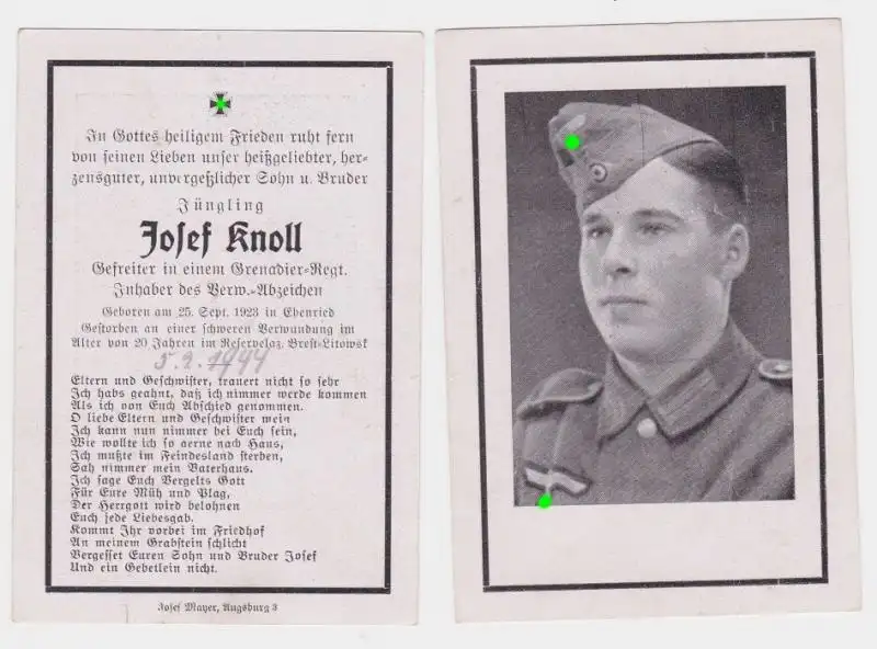 83154 Sterbebild WK2 Gefreiter Grenadier Regiment Lazarett Brest-Litowsk 1944