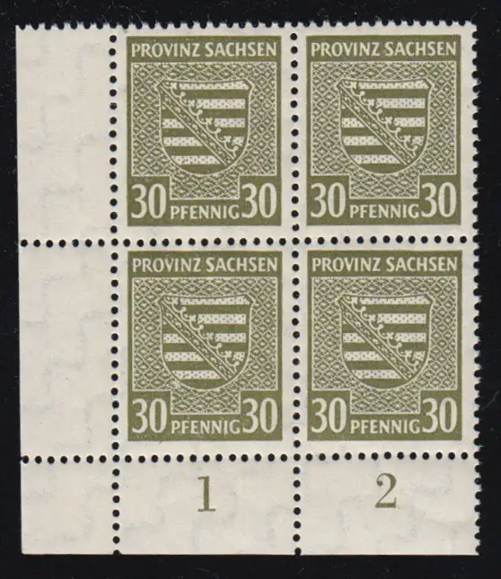 83X I Provinzwappen 30 Pf. als ER-Vbl. unten links mit PLF I Fleck am Wappen, **