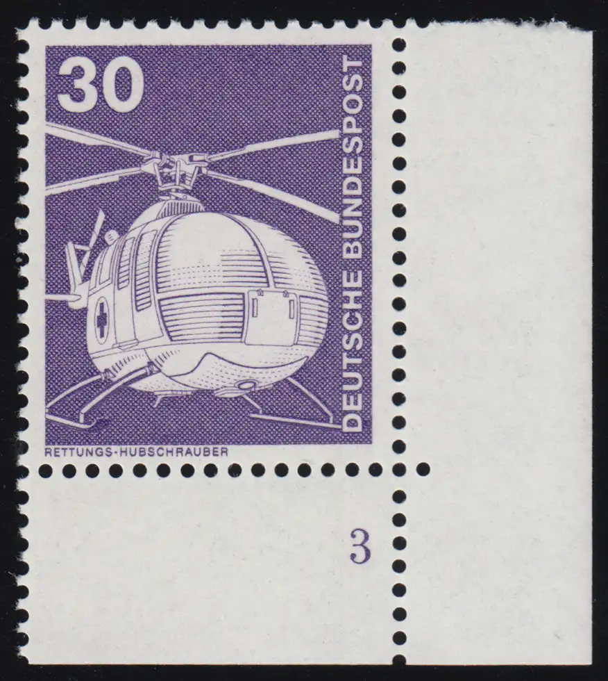 849 Industrie 30 Pf Hubschrauber ALTE Fluo ** Ecke FN3