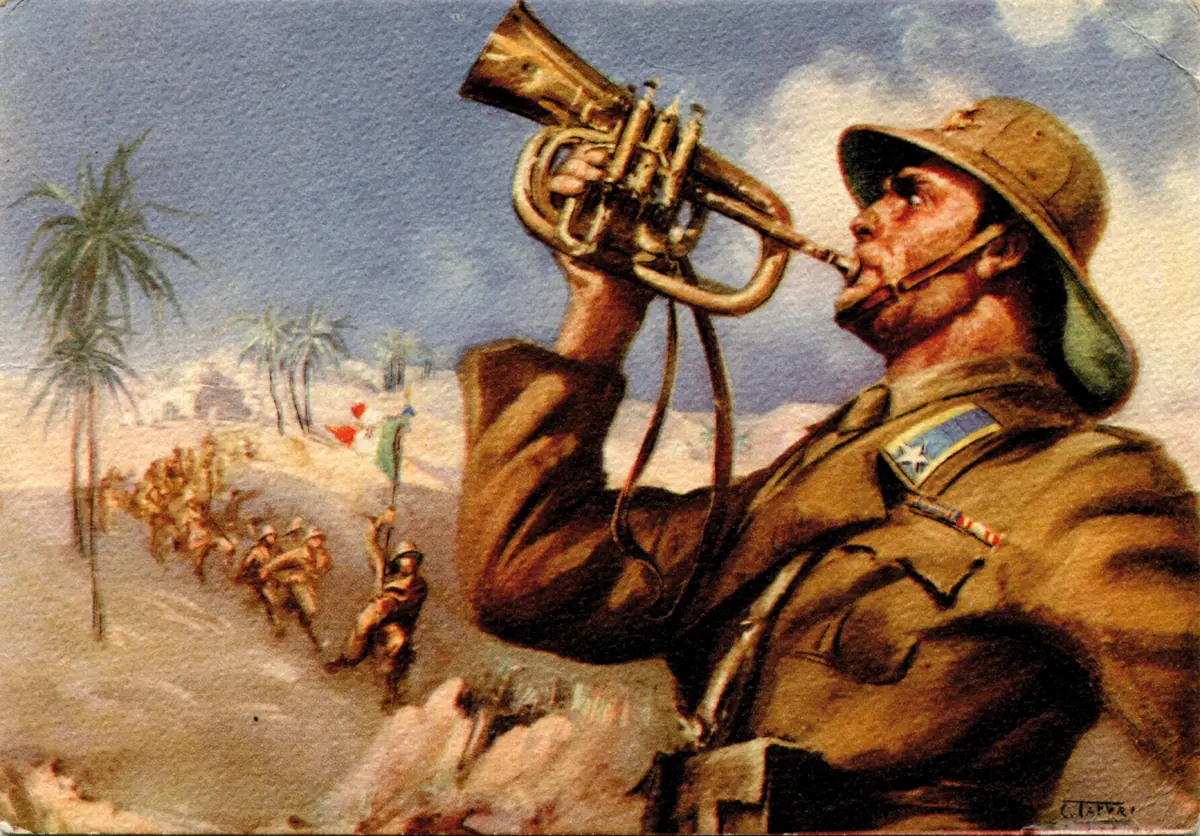 85. Reg.to Infanteria Verona - Postkarte Trompete AK - 85. Reg.to Infanteria Verona - Postkarte Trompetenzeichner C. Tafuri - gereist 1.10.40 - ab Jahrgang Militärpost Nr. 260 - Bella Cod. 181/16
