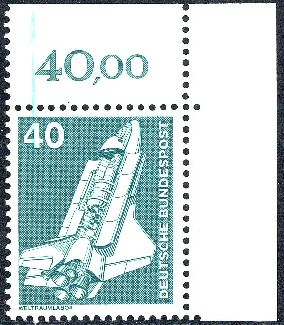850 IuT Weltraumlabor 40 Pf - Farbstrich in Markenfarbe links oben, Ecke o.r. **