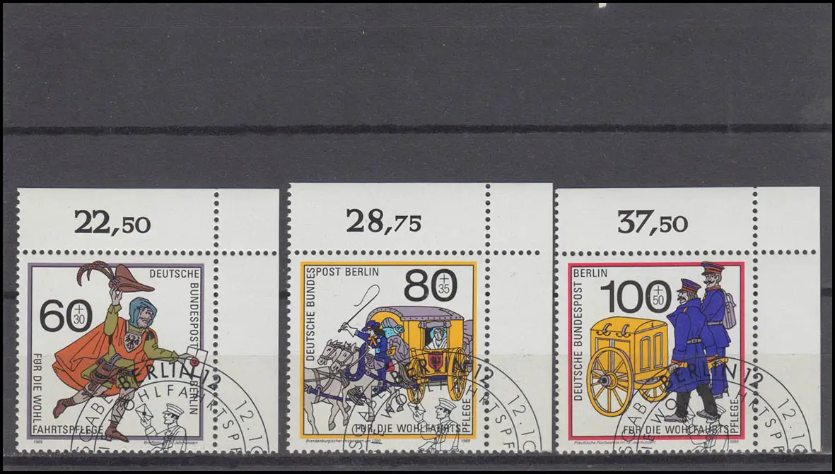 852-854 Postbeförderung 1989: Ecken oben rechts, Satz mit ESSt BERLIN