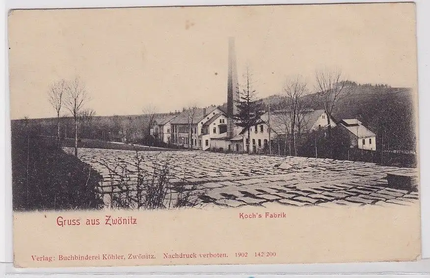 85485 Ak Gruß aus Zwönitz Koch´s Fabrik um 1900