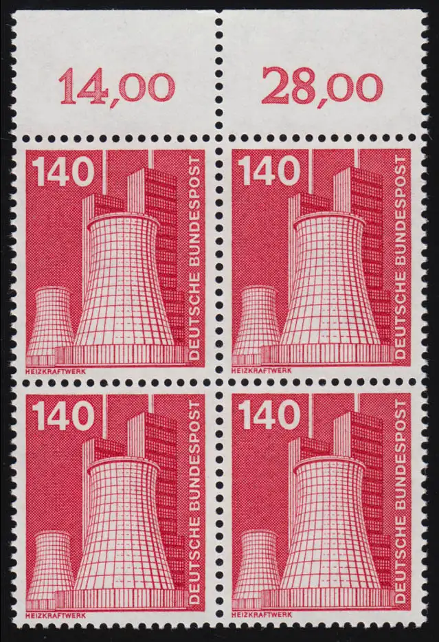 856 Ind.u.Technik 140 Pf NEUE Fluo, OR-Viererbl. ** postfrisch