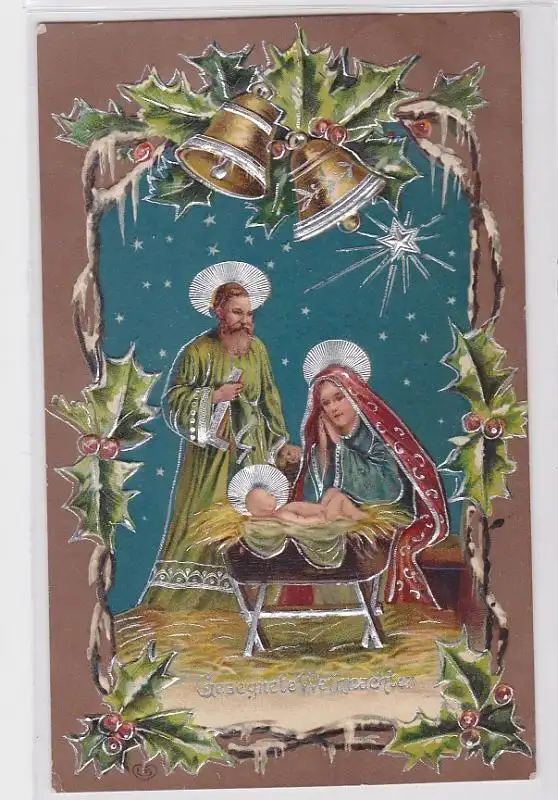 85811 Fröhliche Weihnachten Präge Ak Krippenmotiv 1909