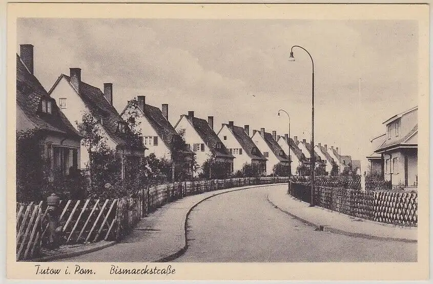 85900 AK Tutow in Pommern - Bismarckstraße, Straßenansicht um 1930