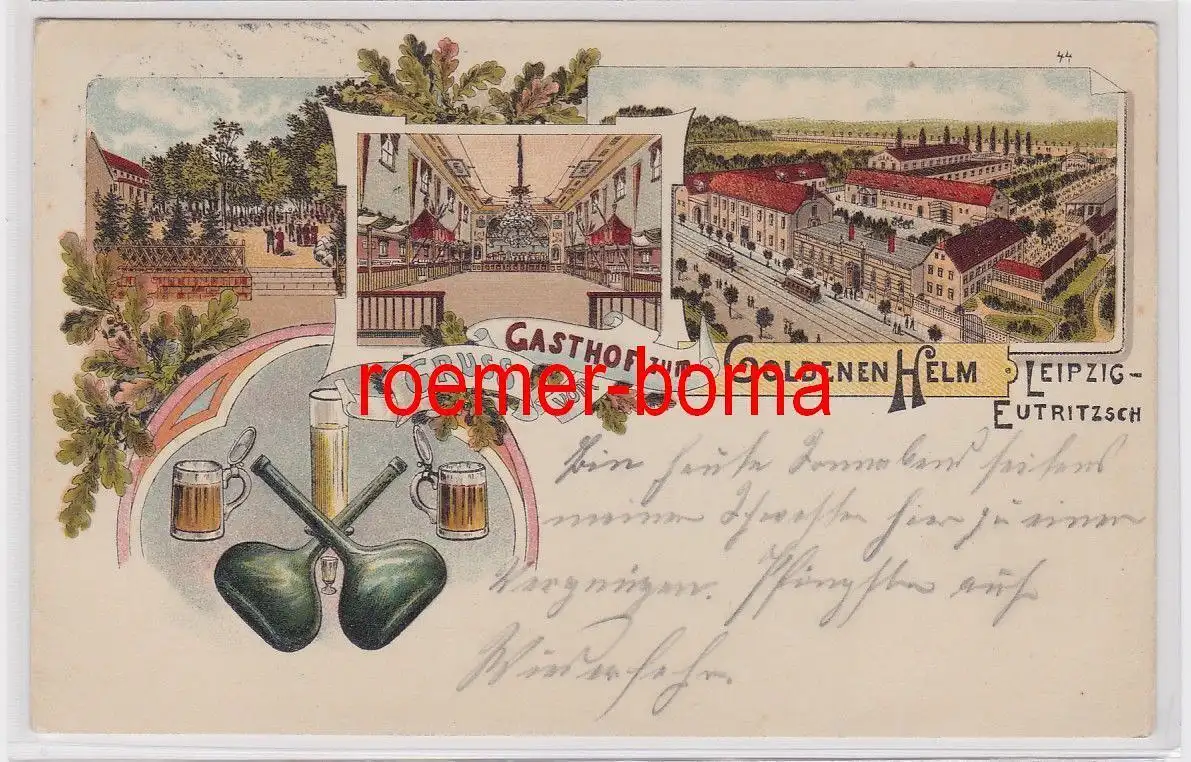 87174 Ak Lithographie Gruß vom Gasthof zum Goldenen Helm Leipzig Eutritzsch 1910