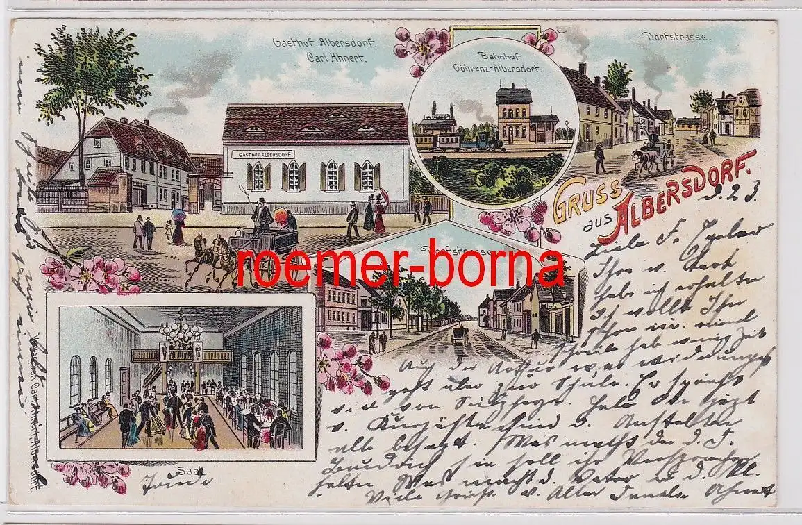 schöne farbige Lithographie, Gasthof, Bahnhof, Dorfstrasse, gelaufen (Marke befestigt), gute Erhaltung siehe Bild,