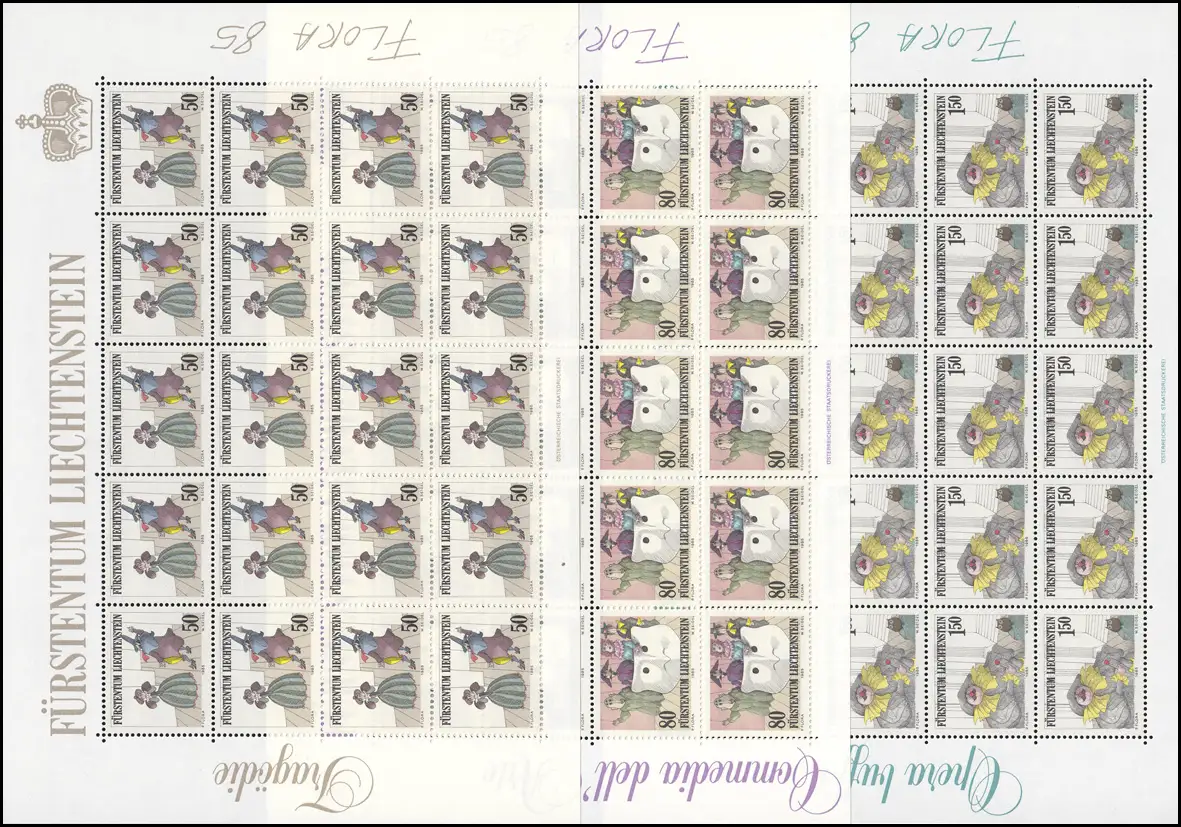 887-889 Theater - Tragödie, Komödie, Oper 1985, 3 Werte, Kleinbogen-Satz **