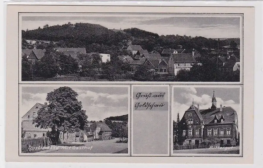 89209 Mehrbild Ak Gruß aus Goldschau Dorfstraße mit Gasthof um 1940