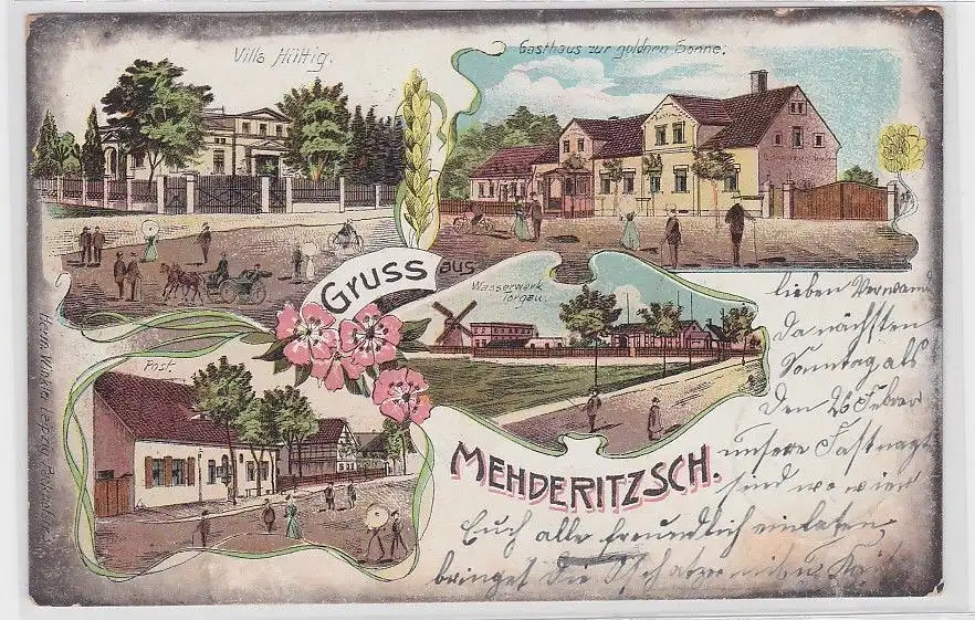 89526 Ak Lithographie Gruß aus Mehderitzsch Gasthaus, Post usw. 1905