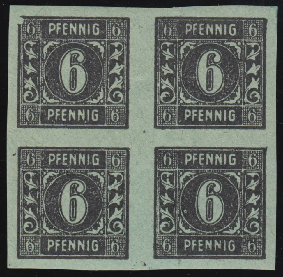 8xU Freimarke 6 Pf. ungezähnter Viererblock, ** postfrisch