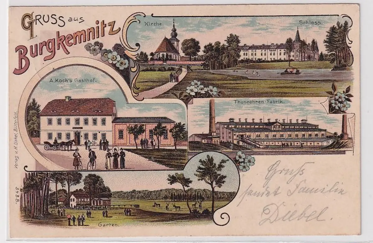 900629 Ak Lithographie Gruß aus Burgkemnitz Thonröhrenfabrik, Gasthof usw. 1906
