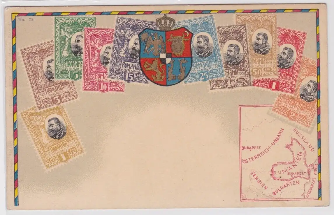 901139 Briefmarken Ak mit Briefmarken von Rumänien um 1910
