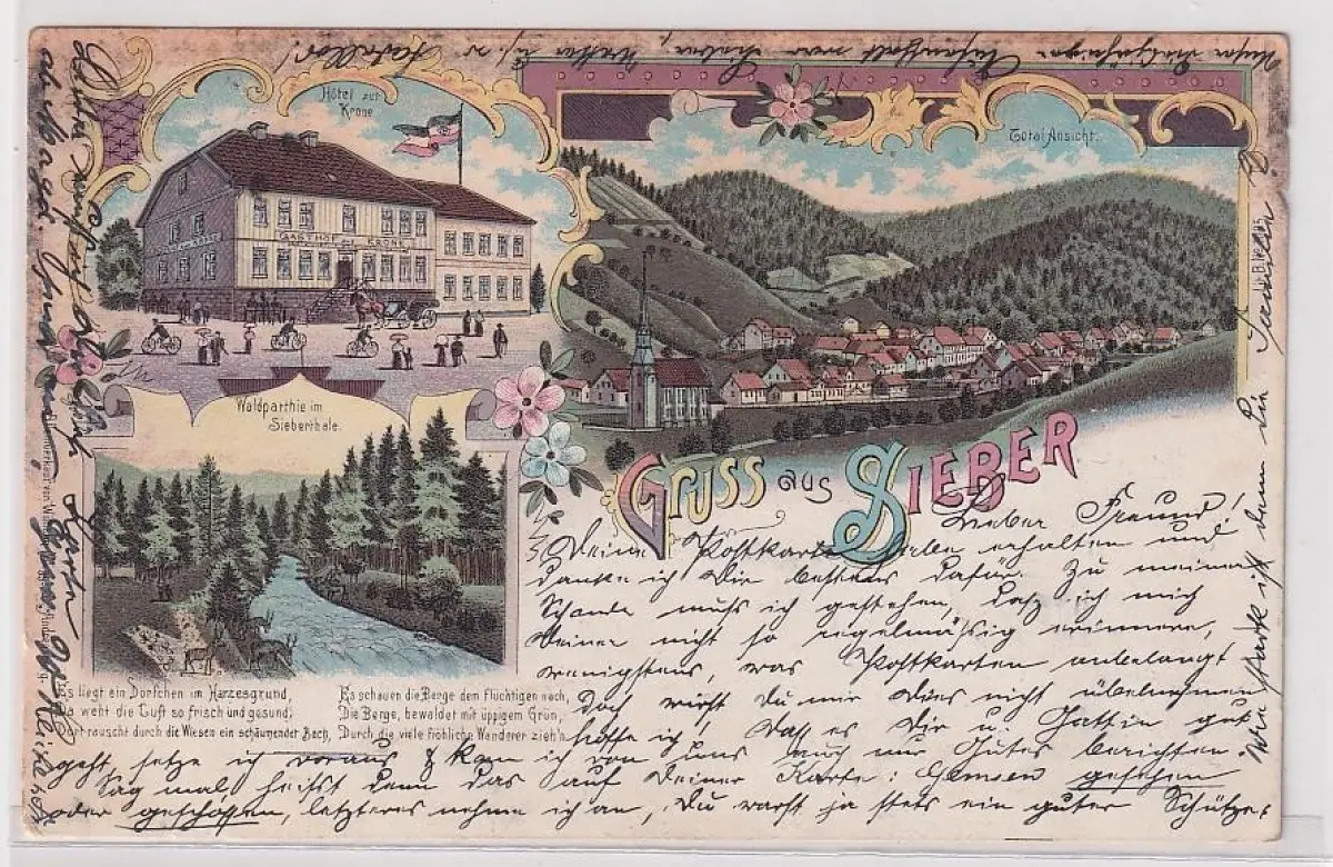 901764 Ak Lithographie Gruss aus Sieber Hotel zur Krone usw. 1901