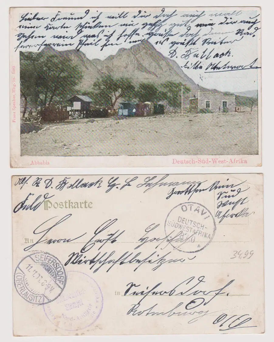 gelaufen mit Feldpoststempel Otavi mit Truppenstempel Nord Artillerie 2.Halbbatterie, gute Erhaltung siehe Bild,