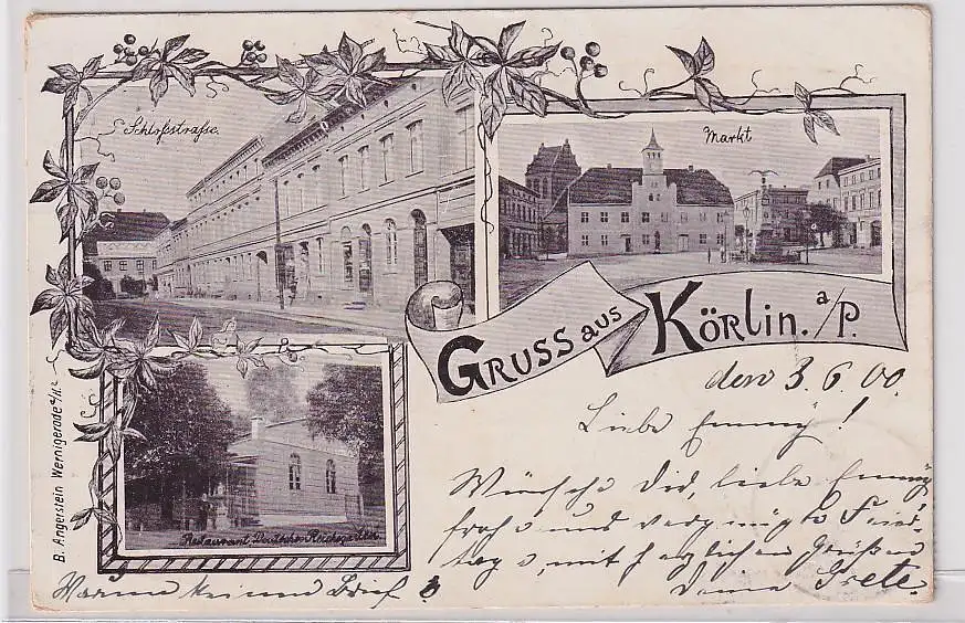 901932 Ak Gruß aus Körlin Karlino an der Persante in Pommern 1900