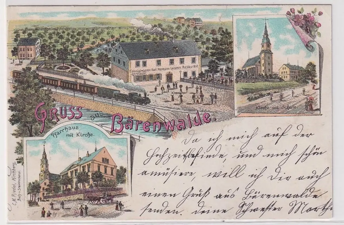 902547 Ak Lithographie Gruß aus Bärenwalde Kolonialwarengeschäft und Restaurant