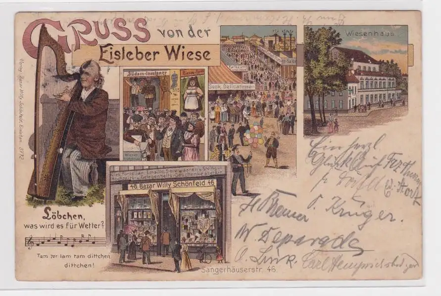 904510 Ak Lithographie Gruß von der Eisleber Wiese 1907