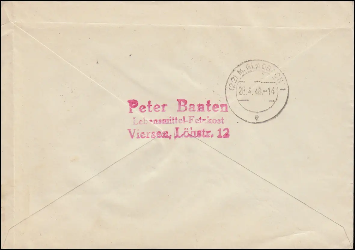 911ff Kontrollrat Ziffern mit 8 Werten auf R-Brief Not-R-Zettel VIERSEN 26.4.48