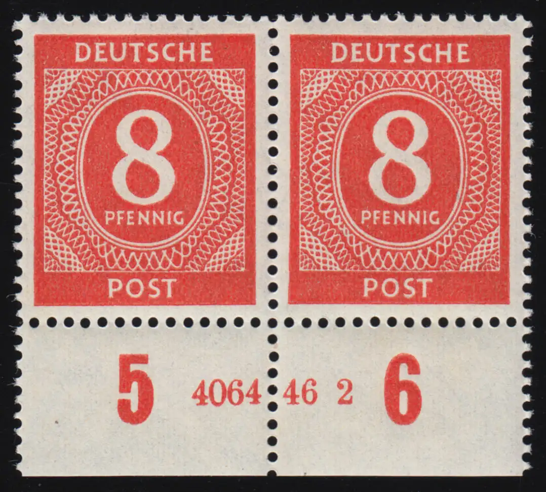 917 Ziffer 8 Pf Unterrand-Paar HAN 4064.46 2, ungefaltet postfrisch **