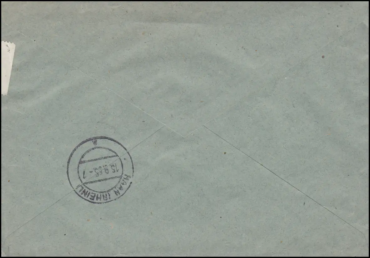 9191 Heuss 70 Unterrand mit Notopfer + Leerfeld, R-Brief Boisheim 14.9.55, Ak-O