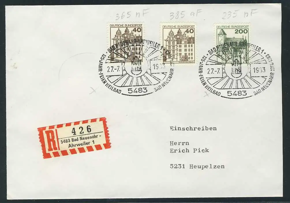 Bad Neuenahr-Ahrweiler 125-Jahr-Feier- 27.7.1983, alle 3 Rollenmarken mit Nummer