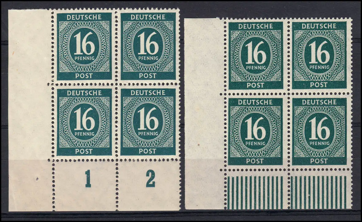 923P + 923W Kontrollrat Ziffer 16 Pf. je ER-Viererblock unten links, Set **
