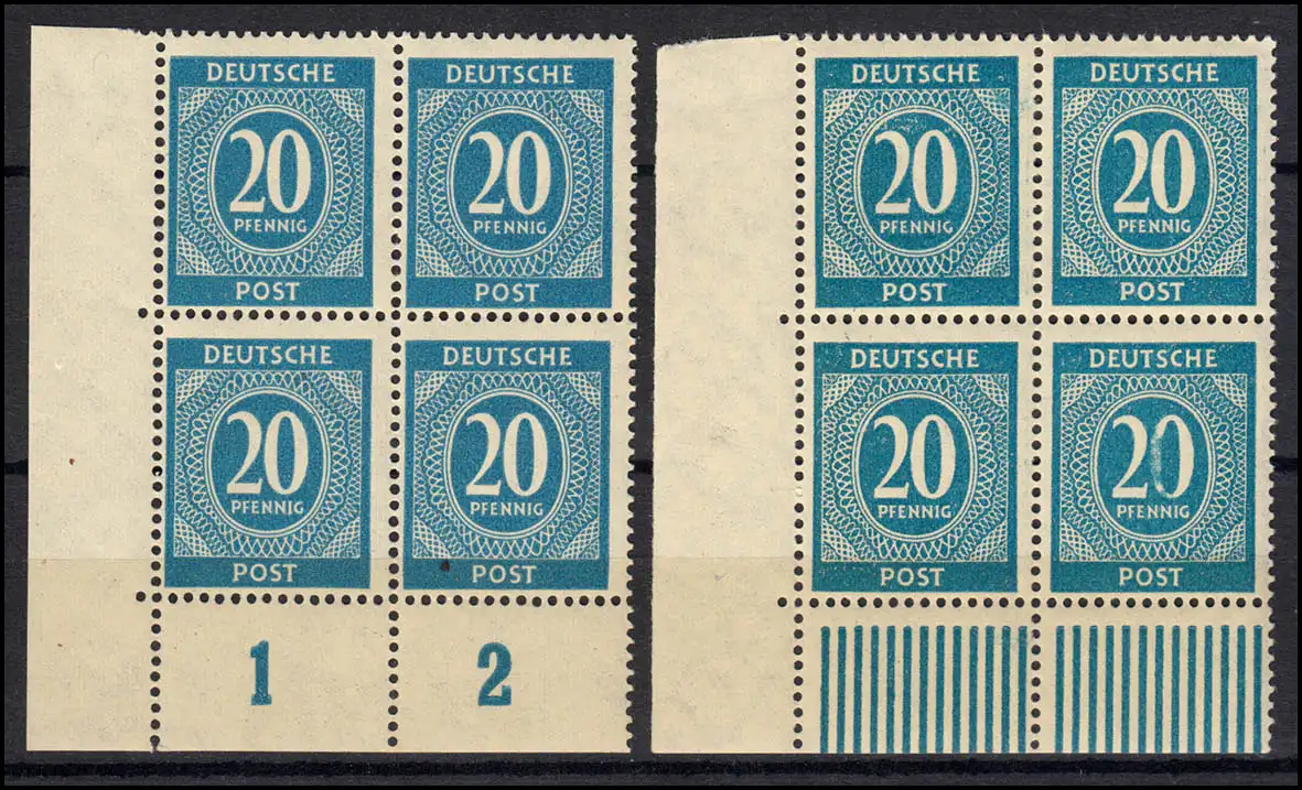 924P + 924W Kontrollrat Ziffer 20 Pf. je ER-Viererblock unten links, Farben! **