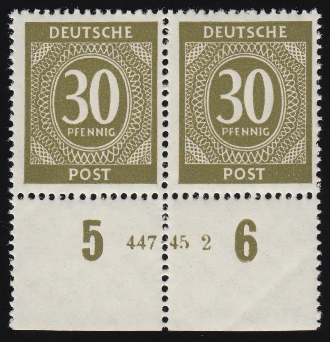 928 Ziffer 30 Pf als Unterrand-Paar mit HAN 447.45 2, ungefaltet postfrisch **