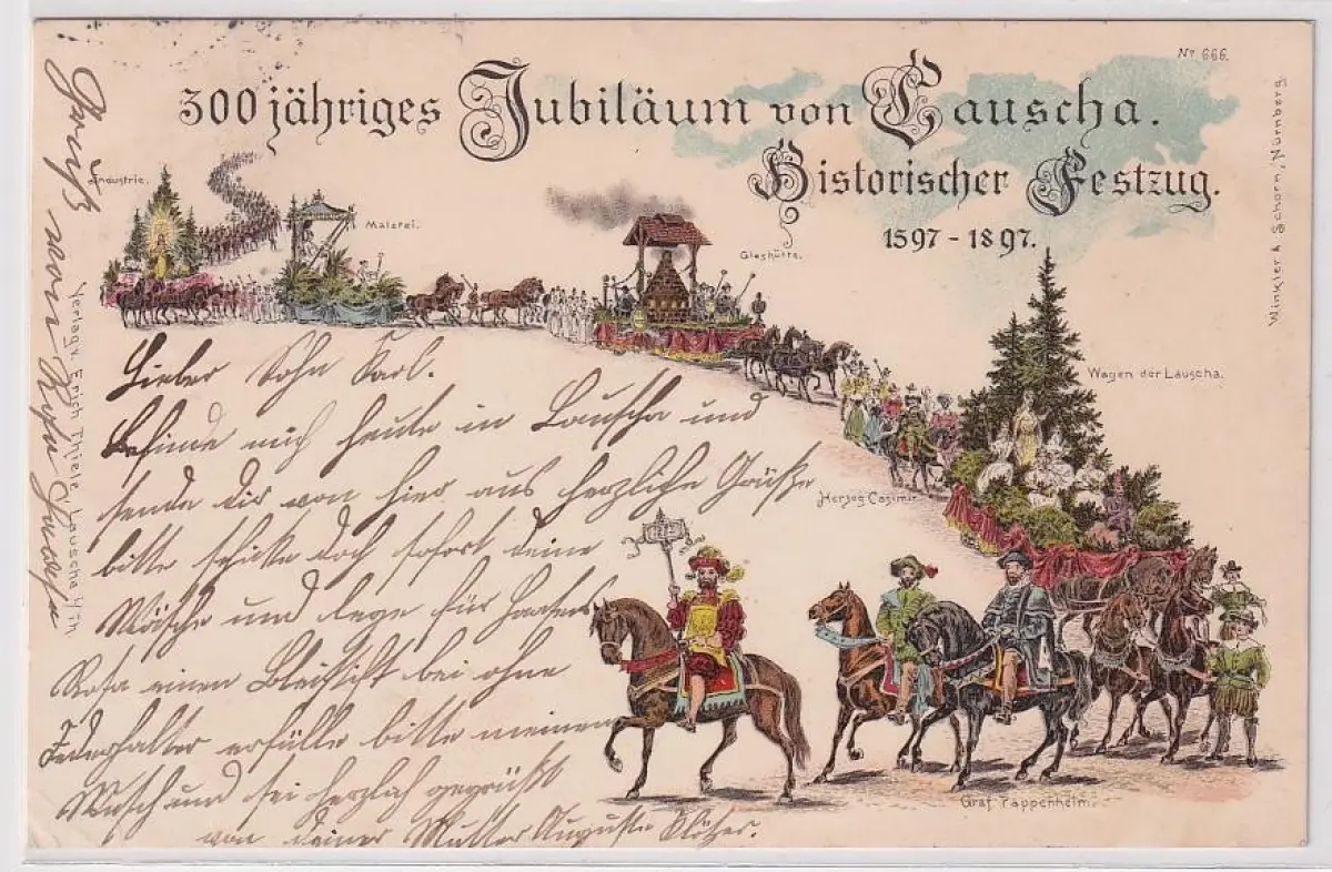 92826 Ak Lithographie 300jähr.Jubiläum von Lauscha historischer Festzug 1897