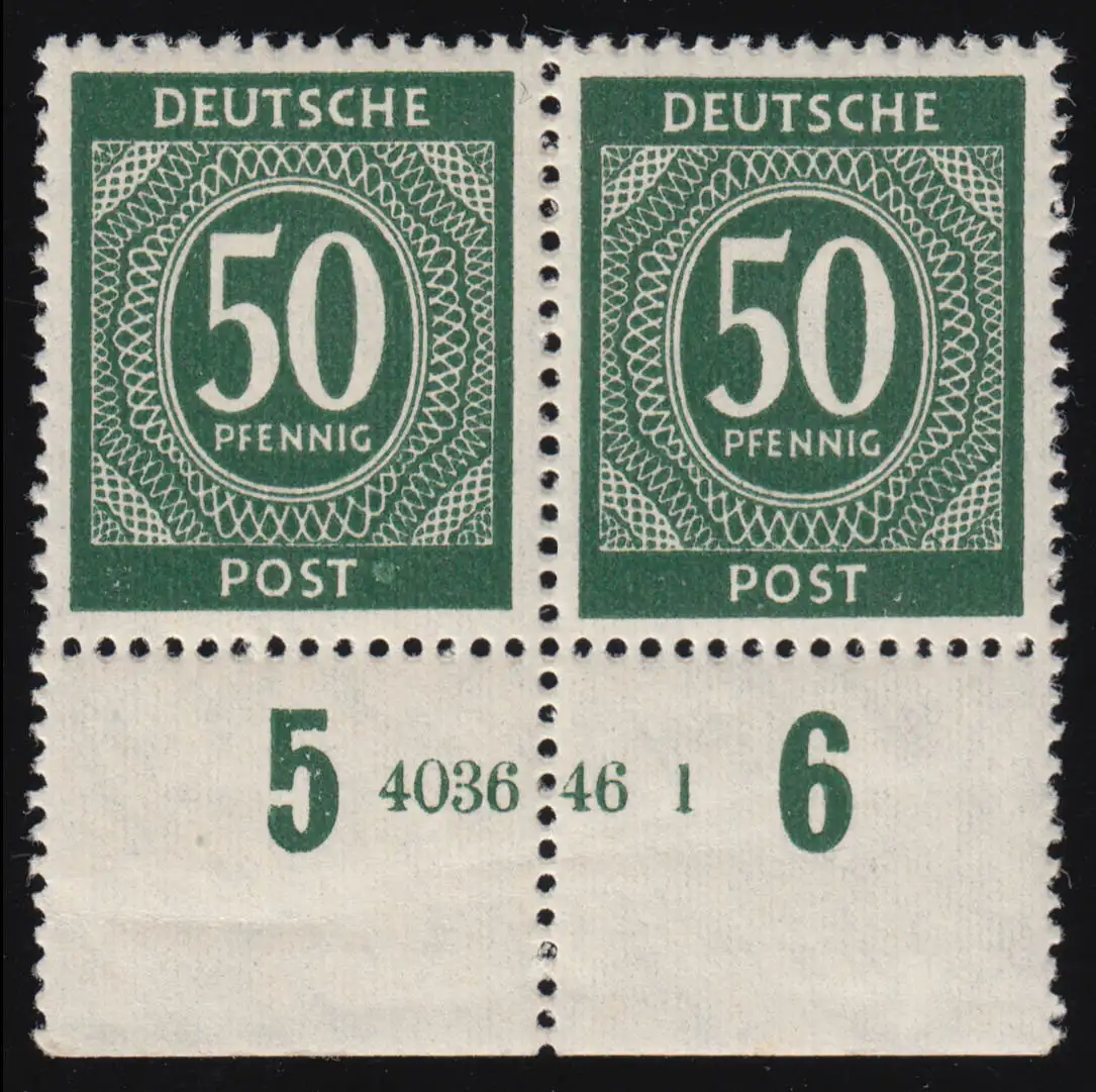 932 Ziffer 50 Pf als Unterrand-Paar mit HAN 4036.46 1, ungefaltet postfrisch **