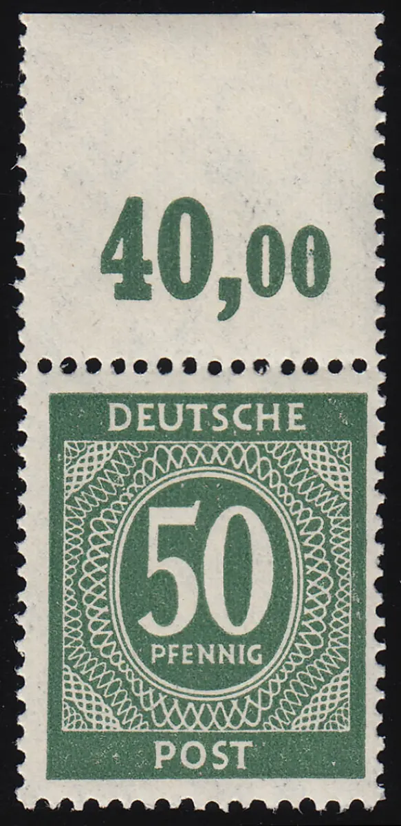 932a PORdgz, Ziffern 50 Pf. durchgezähnter Oberrand, ungefaltet, postfrisch **