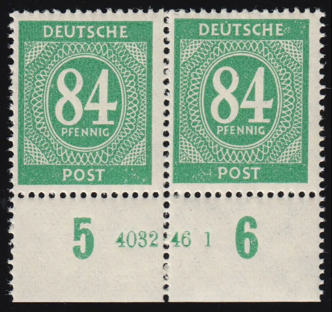 936 Ziffer 84 Pf als Unterrand-Paar mit HAN 4032.46 1, ungefaltet postfrisch **