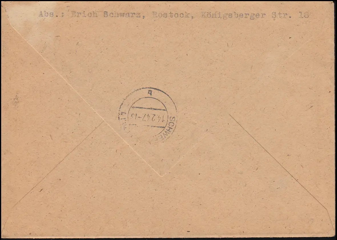 936 Ziffer 84 Pf portogerechte EF auf R-Brief SEESTADT ROSTOCK 11.2.1947