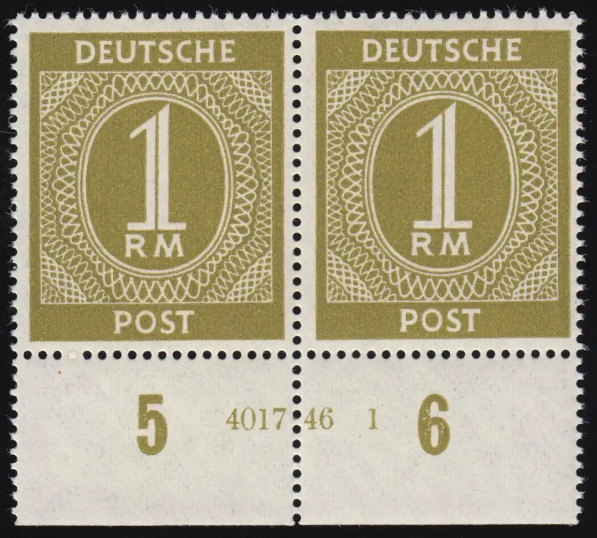 937 Ziffer 1 RM als Unterrand-Paar mit HAN 4017.46 1, ungefaltet postfrisch **