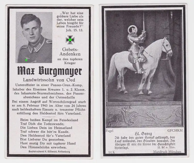 93795 Sterbebild WK2 Panzer Gren. Komp. EK I + II Angriff auf Woroschilowgrad 19
